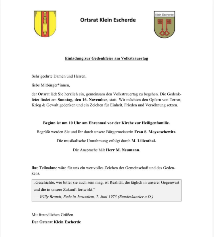 als Neuerung im Jahr 2023 möchten wir euch die ,,Willkommensmappe” vorstellen. Diese Mappe soll jeder Neubürger*in erhalten, der/die zu uns nach Klein Escherde zieht. In dieser Mappe wird Klein Escherde und das Leben in unserem Ort näher erläutert. So werden bspw. die einzelnen Vereine, Firmen und Co. vorgestellt, die ihren Sitz in Klein Escherde haben. Auch die einzelnen Veranstaltungen bei uns im Ort werden dort näher erläutert und sollen unseren Neubürgern*innen einen guten Start und eine schnelle Integration in unserem Ort ermöglichen.